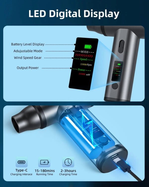 110000RPM Powerful Mini Cordless Turbo Jet Blower for Car Drying Small Car Cleaning Blower Portable Air Gun to Cars Air Duster