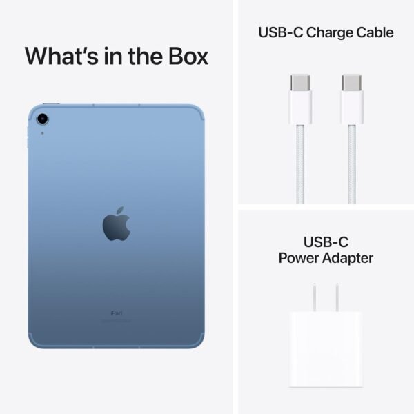 • Apple iPad (10th generation): With A14 Bionic chip, 10.9-inch Liquid Retina display, 64GB, Wi-Fi 6, 12MP front/12MP back camera, Touch ID, all-day battery life – Blue