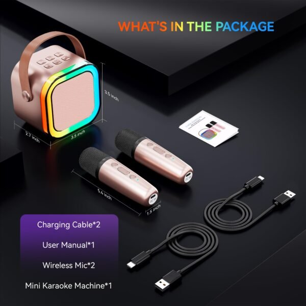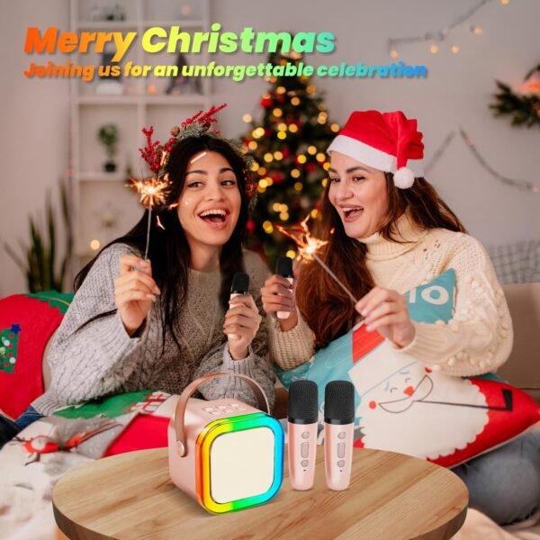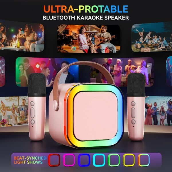 Karaoke Machine for Kids Adults, Portable Bluetooth Mini Karaoke Microphone Singing Speaker with 2 Wireless Mic and Light,Toys for All Smartphones,Birthday, Family,Home Party (Rose Gold)