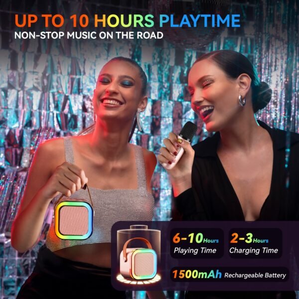 - 【6-10H WORRY-FREE BATTERY LIFE】: Peski’s exclusive, long-life rechargeable battery technology. Quicker charging,and it can doubles as a power bank to charge your smartphone/tablet, long-time lasting design in order to make it easy to bring the party with you wherever you go,perfect for parties and family gatherings!