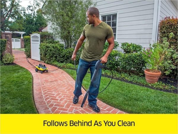 - Base única de cuatro ruedas, te sigue mientras limpias.
