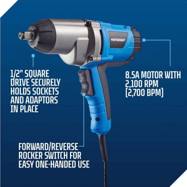 Mastercraft 8.5A Corded Single Speed Impact Wrench with Friction Ring & Metal Gear House, 1/2-in L0024