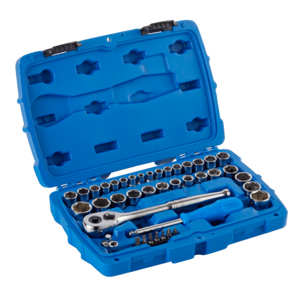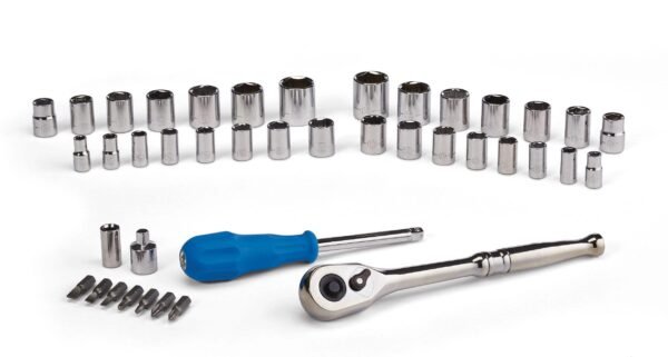 Este Set de Socket Mastercraft es su solución confiable para una gama de tareas de reparación y mantenimiento. Este conjunto de 41 piezas cuenta con enchufes estándar, métricos, superficiales y profundos en 1/4 y 3/8-en unidades de unidad, junto con 7 bits de destornillador y 2 accesorios. Con un acabado cromo pulido para la durabilidad y la resistencia a la roya, estas herramientas están construidas para durar. Los enchufes métricos tienen hendiduras redondas y los enchufes SAE tienen casillas cuadradas para una fácil identificación. La maleta de transporte arrollado proporciona portabilidad y comodidad para el transporte y el almacenamiento.