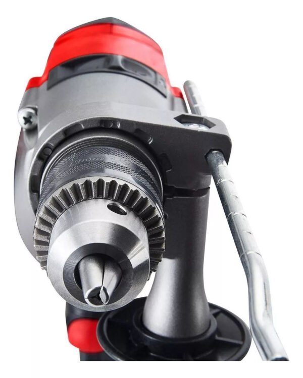 Es muy potente y puede perforar concreto, madera y acero. Tiene una función de martillo que ayuda a atravesar materiales duros como concreto y piedra. Viene con un mango lateral ajustable para mayor comodidad al usarlo. Algunas características importantes son:
